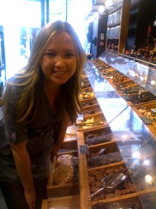 Still, for me, Day 100 is significant so I celebrated by insisting Chloe let me take a picture of her and post it to the blog. This involved me meeting her at the university at 1pm, taking her by tram to the center of town, taking her out to lunch at a reasonably nice restaurant, and then going to a very special candy store (where I took this picture). Oh, the price I pay to get one photo! Imagine. I had to spend several hours alone with Chloe (Melinda was visiting a new friend, a mom of one of Ella’s school friends, and Ella was at school). We had to actually talk to each other, laugh at each other’s silly statements, and talk about kids. You see, Chloe and I have this thing where we like to point out cute kids to each other and talk about them. And pretty much every little kid in France is cute. I mean you should hear them talk. They speak FRENCH! Here’s an example.