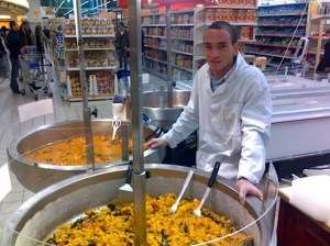 That’s my new friend Ludovic standing behind a huge vat of paella (a food with “ella” in it!) and another vat of some kind of dish involving duck, I think. I hope no one, especially my new friend Ludovic, takes offense to me referring to the containers as vats.