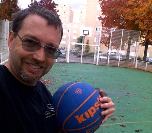 I took my blue Decathalon basketball and put on my red & black Decathalon basketball shoes. I boarded a tram in the direction of Orvault/Grand Val, knowing there was an outdoor court along the line. All the while, I was humming, “Basketball Jones, I got a basketball jones.”