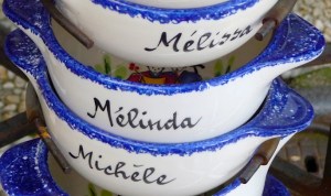 And having found Melinda’s name most recently, I’ll begin with hers. This photo was taken last Sunday at a gift shop in Le Croisic, the city on the coast we visited with my parents. Indeed, that’s Melinda’s name on this bowl, although the use of it is less for something like soup or cereal and more for your morning warm drink. You know, you need a bowl of café au lait to get you going in the morning, right?