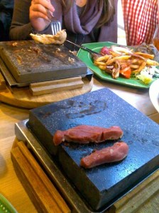 Niall and I both ordered meat-on-a-hot-stone, which at this place came with individual hot stones for each person. Niall’s was called “Mad Cow” – the kid version of the steak-on-hot-stone dish, which came with the caveat that it was for kids 10 and up (Niall was so pleased he had just turned 10 :D) and that parental supervision was required. It was delicious (mine too – I got a steak and seafood combo).