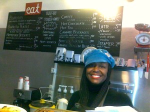 So says the flyer I am holding in my hand from the Black or White Café. And having had lunch there today with Melinda, I can say that it’s true. We learned about the café from Christine, who is longtime friends with Kimberly, captured in today’s picture.