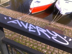 Clearly this was one of those serendipitious events that means you HAVE to go back to the railing and find more information. Perhaps it is the lair of an elf king, which was the original meaning of Avery! On the other hand it might be the location of a lovely little cafe along the river where the boats were tied up. Obviously you are not meant to leave this alone! Go forth young man!! And of course IF you find that there is some significance in your sighting of Avery, I will expect 1,000 points for insisting that you not just ignore this sign!