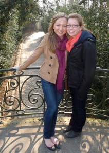 Marital fidelity issues aside, we had a grand time touring the castle this morning. After lunch at a restaurant on the grounds near the canal, we went for a long walk out past the canal and then onto Marie-Antoinette’s estate. We got several great photos on this walk, including this one of Chloe and Ella on a little foot bridge. I have others, including several taken at the Queen’s Hamlet. I decided to hold off using the one of Melinda and me that Chloe took at the Temple of Love. This is intended to be a family-oriented blog after all.