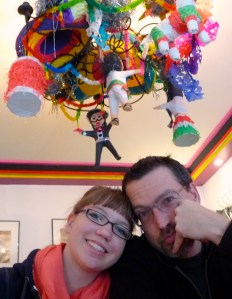 To celebrate the fact that today is Manon’s birthday, Ella and I posed for this photo inside the Mexican restaurant while waiting for our lunches to arrive. What posing for this photo has to do with Manon’s birthday is lost on me now, but you have to admit that Ella’s bangs look really good. Me, I look a little funny with my hand in front of my mouth but, hey, the more of my face that gets covered in pictures the longer the camera will last, right? Or it has everything to do with the fact that today is Manon’s birthday and to celebrate I put my hand in front of my face.