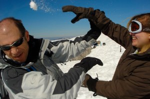 This photo was taken at lunchtime today during a break from the gang’s final day of skiing. Melinda and Ella departed early, heading back to Les Carroz to meet up with me. That left Chloe, Manon, Frédérique and Laurent to fend for themselves, and the fending involved a snowball fight. From what I’ve gathered, Laurent was a common target throughout the week and rarely, if ever, retaliated. There is another photo from a few days ago in which he is sitting quietly eating his lunch, snowballs raining down upon him. So in paragraph one above I imply he has something akin to black belt status. And in this paragraph I am suggesting he has the patience and concentration of a Shaolin monk.
