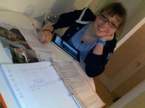 In the foreground of today’s photo is the handwritten script tucked neatly in Ella’s school binder. She looked up from reading Harry Potter fan fiction (or something like it) on her iPad for me to snap this picture.