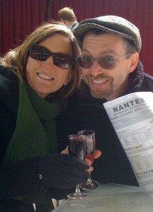 Who are we looking at? We are looking at Dana, who was kind enough to take our picture. Where are we? At the Nantes racetrack, enjoying a sunny afternoon of racing. What are we doing? Having a little something, as Winnie-the-Pooh might say, although I don’t recall him sampling much red wine (like Melinda) or indulging in a Kir Cassis (like me).