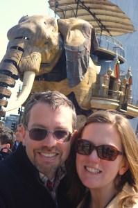 Today’s photo was taken by Frédérique on Sunday just after Laurent had finished the marathon. He was stretching and rather than take a picture of him doing that, Frédérique situated Melinda and me in front of the famous Nantes elephant. It’s a great shot, don’t you think?