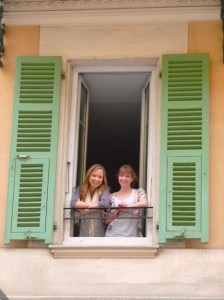 So here they are, my nice girls, looking out the window of our incredibly nice Nice apartment. I mean everything about the apartment is Nice, I mean nice. And everything about the girls is nice, even their knees. Yes, my nice Nice girls have nice Nice knees.