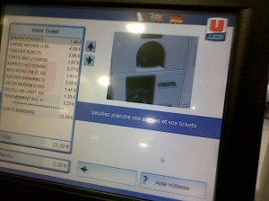 Meet one of my French professors in Nantes, the auto-cashier at the nearby U Express grocery store. I had a funny realization while checking out there just a few minutes ago.