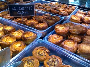 You see, last week Christine told Melinda about her favorite thing in France, something called a “Kouign Amann.” You can read more about it on Wikipedia (heck, that it has its own English Wikipedia page should tell you something about how incredibly good it is), but let me just say that a taste sensation that combines sugar, butter, and dough in such a way to caramelize the sugar is aces in my book. So anyway, Christine took Melinda to a place to get a smaller version, a kouignette. And today, Melinda took me to get one.