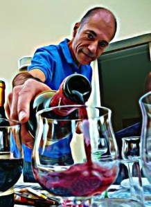 Today’s photo is of Laurent pouring one of the three wines we used to pair with the chocolate. We had a Syrah, a Merlot and a Cabernet Sauvignon. If you’re scoring at home, Theo provides five bars of chocolate, a Dominican Republic, a Rich & Dark, a Bread & Chocolate, a Fig, Fennel & Almond, and a Cherry & Almond. Frédérique and Christine were quite taken by the fact that the Bread & Chocolate actually lists French bread as one of its ingredients!