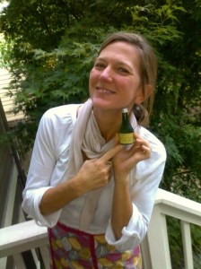 But today’s post is specific to a little gift Melinda presented me tonight. Yes, in her hands is a tiny bottle of eau de vie. This one is eau de vie pomme (apple) and I have no doubt it will be wonderful. She told me she contemplated buying me a regular sized bottle but it was a bit expensive. This little bottle was $5…