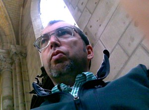 By the way, today’s picture is another old one, a self-portrait taken inside the largest cathedral in Nantes. As a connection to today, I wore that same striped shirt today that I’m wearing in this picture. But I chose the picture because it seemed to go well with the question, “Who reads this blog??”