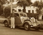 Take a look at this picture (click it to enlarge it)! That’s my dad, likely some time around 1950 in front of his car when his family lived briefly in California. It’s a pretty spectacular photo, I think, and it got my thinking about cars.