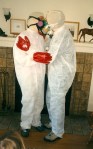 Actually, though, it was in finding this picture as part of my scanning marathon than inspired the entry. Yup, that’s Melinda and me from the year 2000, just before heading outside to attempt to remove the asbestos siding from our house, part of the remodeling efforts. We got it in our minds that we could save a lot of money doing this work ourselves.