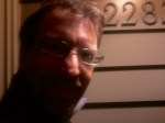 This unflattering self-portrait was taken on our doorstep about 10 minutes ago. I had just arrived home on foot after spending part of the evening with an old friend, Lance, getting a beer at a nearby pub.* It’s pouring rain outside and the pub is about a 10 minute walk so I am reasonably wet.
