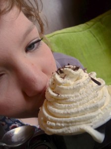 Near the end of our self-directed tour, we stopped at a cute café that specializes in tea. Of course, Ella order a chocolat chaud, one that came with a foot of whipped cream on top. Her loving older sister, only concerned for Ella’s well-being I’m sure, commented about the number of calories in a foot-high pile of whipped cream. Spoon in hand, poised to pounce, the concerned older sister then demanded tastes of said whipped cream and sips of hot chocolate.