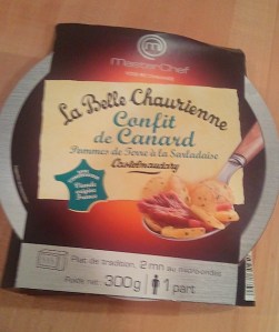 Today’s picture is of an individual serving of said confit that I brought back from France in July, saving it for just such an occasion as last night. Melinda wanted her favorite enchilada. I had already made a quick meal for Ella prior to her babysitting gig. Chloe is away at college. And the weather had turned to cloudy and cool. Time for me to eat some duck!