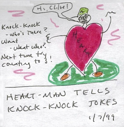 Drawing 30 : 01-07-99 Published on September 1, 2013March 28, 2022 by Andy Smallman Oh, my, did Chloe love Knock-Knock jokes. This was her favorite for a long time.