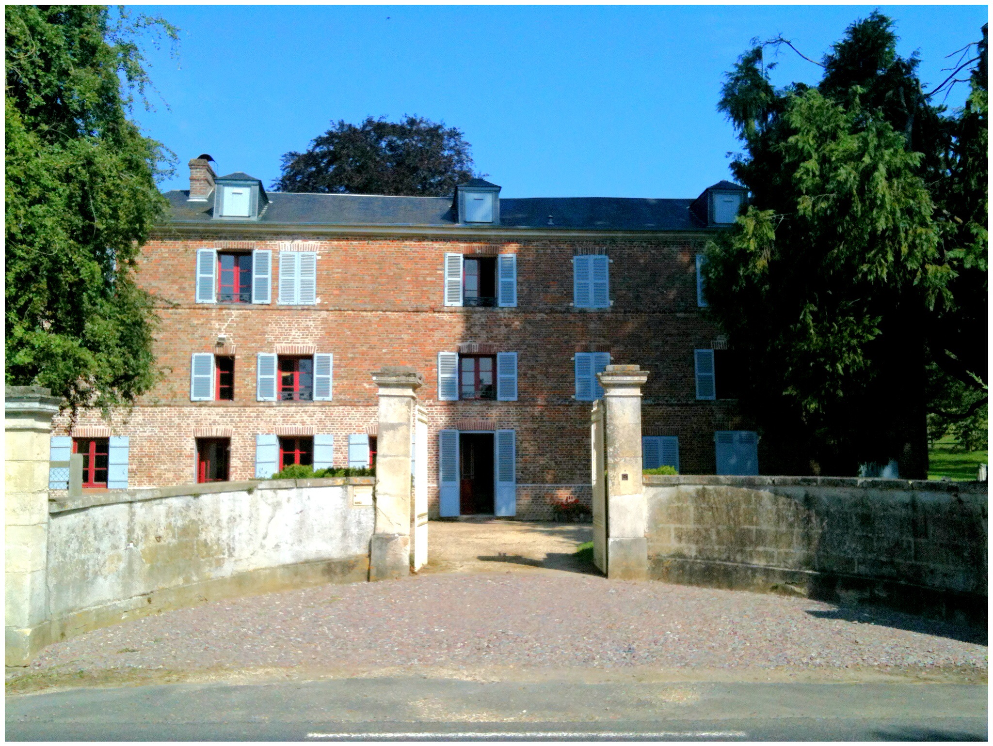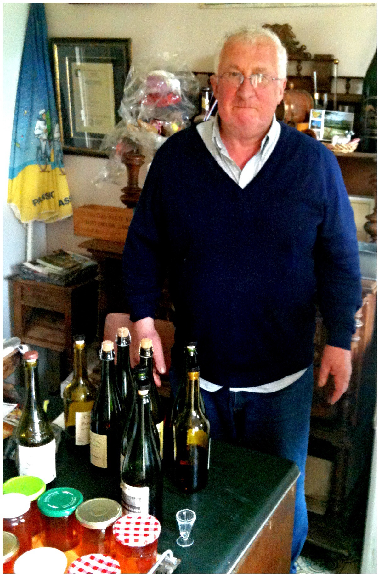This is Bérnard’s parents’ house in Auvillars. We stayed here for 3 days and 2 nights.Here are Bérnard’s parents. Among many things, M Bertail told us about his family being displaced from their house by the Nazis when he was 14 (a different house than the one in the photo above).Chloe* and Ella outside the Bertail house.Christine, explaining herself. Again.Bérnard took us to a farm where Calvados, an apple brandy from Normandy, is made. This man gave us a tour and tastes. I’m bringing home a 10 year-old bottle courtesy of Bérnard!Celeste, Melinda, Ella & Chloe* attempt a volleyball game in the Bertail backyard.This is a close-up of the Bertail mailbox. I think the handwritten name is charming.Bérnard’s sister, front and center, was also visiting.