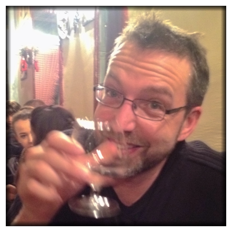They knew it was Ella’s 18th birthday and took great care of us. We had a champagne toast to begin (Ella says she likes good French champagne – go figure) and a bottle of red wine with dinner. Speaking of dinner, Ella and I both had confit de canard so you know we are pleased. After the dinner dishes were cleared, the owner dimmed the lights, made a big announcement in both French and English, and brought Ella a piece of chocolate cake with a candle while everyone on the floor, patrons and workers alike, sang happy birthday to her in French. Me, the proud papa, I topped it off with a Poire, my digestif of choice. From there, Chloe took Ella out for her first legal adult beverage sans parents.