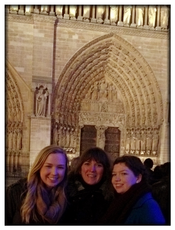 Suddenly, the area in which we were standing became flooded with people. Melinda overheard some guards saying that people were to be let in from this spot! Ella was having none of that, though, thinking it wasn’t appropriate for us to go in. But Melinda and Chloe were stoked! In they went. At 11:30pm. On Christmas Eve. At Notre Dame. In Paris. Crazy cool.