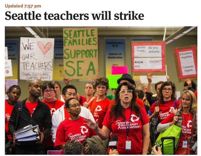 Despite going to school today and getting her schedule and her photo taken, Celeste will not start school tomorrow as planned. The Seattle teachers voted to strike, the first time in 30 years (when they were out for 3 weeks). Meanwhile, today was the first day of school at PSCS. It was quite normal, even with 53 students and 9 staff packed into our space.