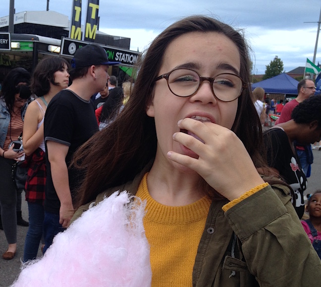 To get back at the powers that be, Celeste ate some of her father’s beard. Oh, Papa’s Beard is the literal translation for cotton candy. I bet you knew that.m