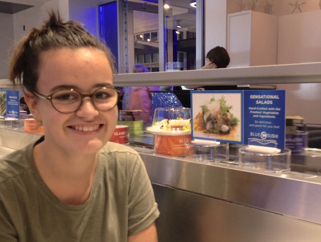 22 October 2015 : 365 Faces of Celeste (Blue C Sushi) Published on October 22, 2015 by Andy Smallman A couple of nights ago we took Celeste to the recently re-opened Blue C Sushi in University Village, not far from our house. This is the place where you can pull your raw fish on a plate off of a conveyor belt.