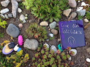 Soon after my last post, I brought a friend to the Give & Take Garden. For this visit, we “gave” a special rock that was given to me several years ago by my niece, Stephanie. Etched into the rock were the numbers “143,” a reference significant to me because of a project I started years ago with a group of PSCS students. In short, 1-4-3 means “I love you” (1 letter, 4 letters, 3 letters). I’ll explain more in a future post very soon, one related to my neighborhood treasures idea.
