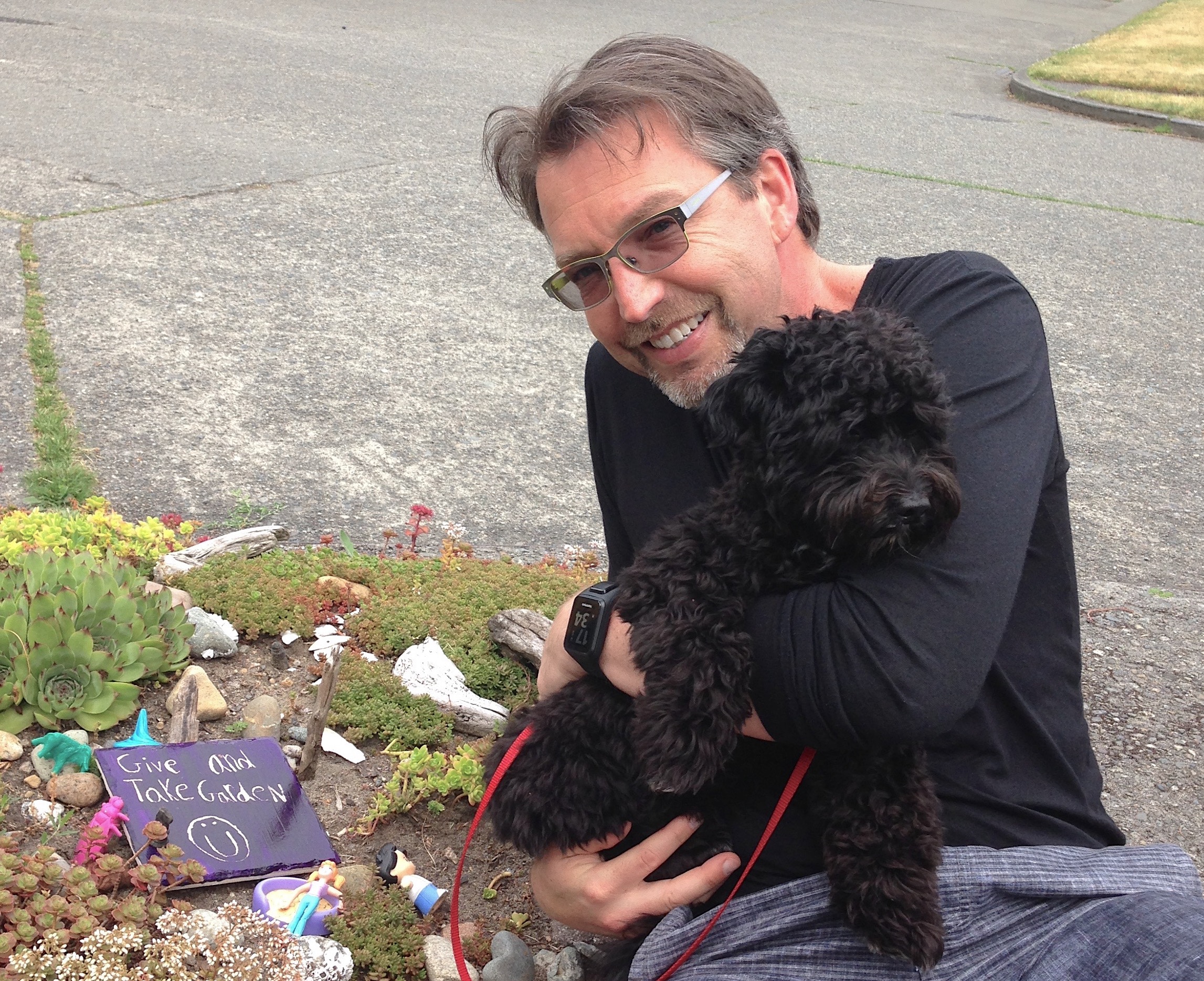 Ella joined Bentsen and me for a walk to the garden in June. On that visit we brought along a little toy car to give. I was pleased to see that the 143 rock was gone, which means to me that someone thought enough of it to take it. Give and take, right?