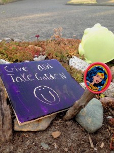 Speaking of giving and taking, I hesitated for a minute taking the ring, thinking that perhaps the taking should all be done by children. Standing at the garden, I was quickly reminded of a philosophy of accepting things that I shared in a recent kindness class. The idea is that there is no giving without someone receiving (or taking). So by taking the ring, I think I was better utilizing the garden’s main purpose. I even wrote about this idea on this blog over 5 years ago! Take a look.