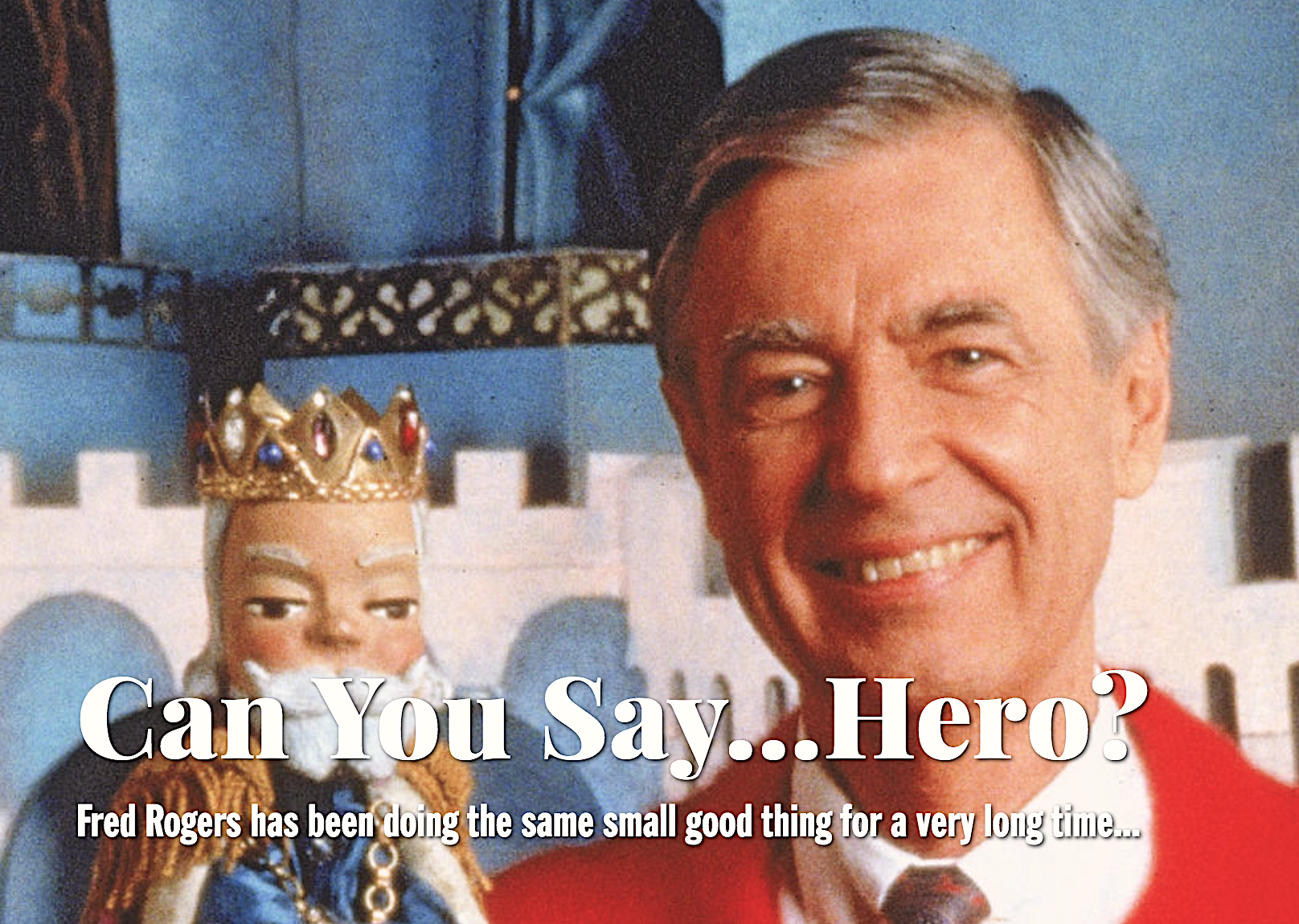 I had recently read a brilliantly written article by Tom Junod that was both an interview with and biography of Mr. Rogers that had appeared in Esquire Magazine in 1998. If you ever need a pick-me-up of any kind, I highly recommend it. Esquire has it archived here. It’s a long article but worth every minute you’ll spend reading it. You’ll emerge warmed for doing so, your faith in humanity restored (if you need it restored). Really.