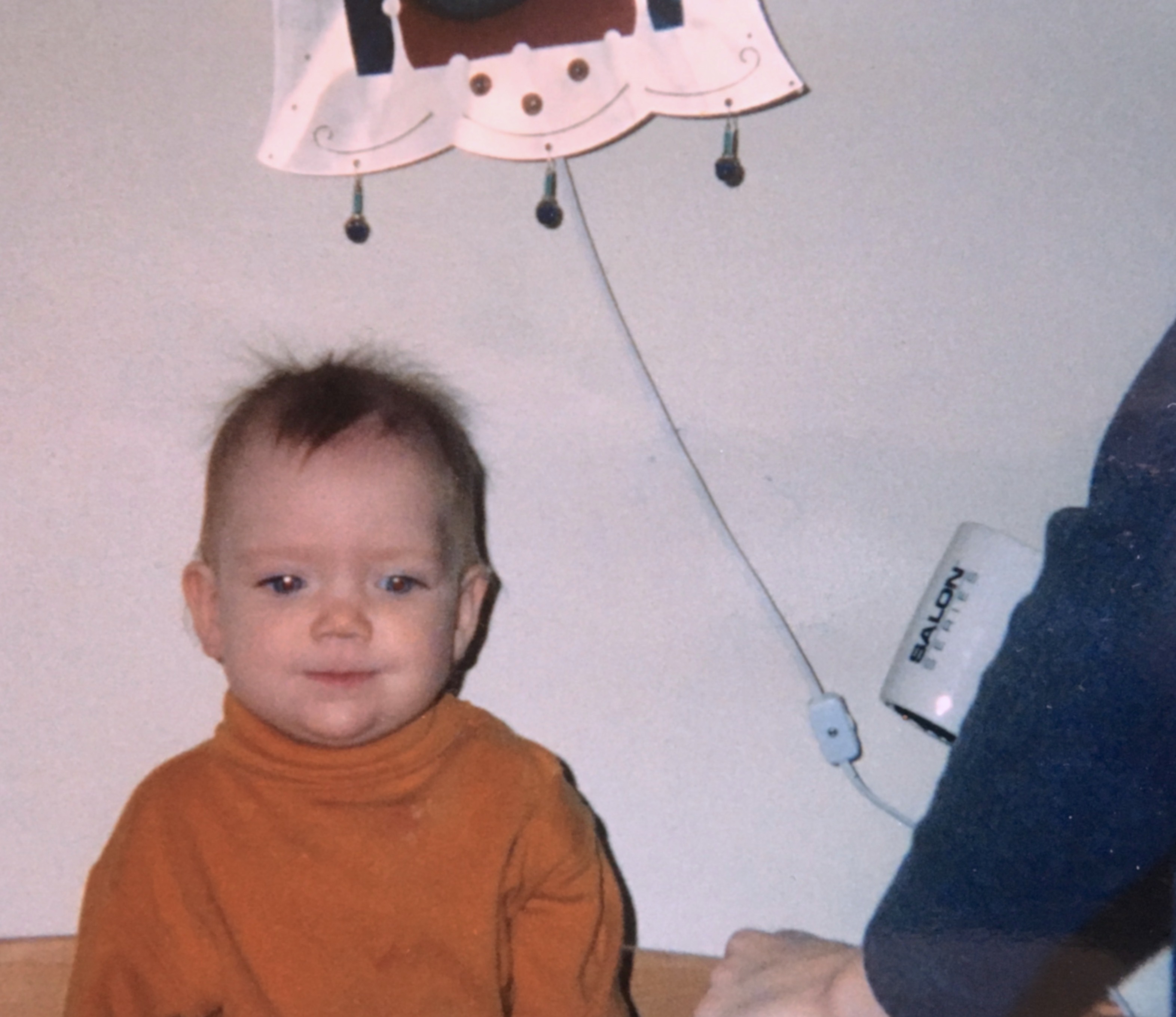 As part of my personal downsizing project, a major undertaking I’ve started in preparation for selling the house, I’ve been digitizing old photos. Some of the best have come from a photo album Chloe started when she was 5 years-old or so. She had this simple little kid camera that looked like plastic binoculars, allowing the child photographer to hold the camera up to their eyes like wearing a mask. I think the camera took 110 film. Anyway, most of the photos in this book were taken by Chloe with this camera. The photo above of Ella sitting on her changing table in 1998 may be my favorite. Her expression, the cockeyed light above, and Melinda standing there with a hair dryer (which was used to dry the body before putting a diaper back on). It’s a classic.
