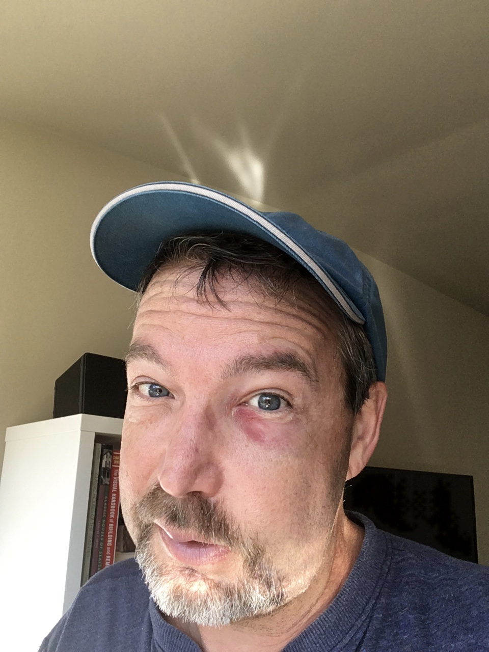 I’m writing two weeks after the surgery, having just returned from my post-op appointment in which the surgeon pronounced me well on my way to recovery. The “pizza burn” has pretty much healed. The stitches have dissolved. The swelling in my face that blackened my left eye and caused it to swell shut is gone. And, most importantly, the pathology report came back as the surgeon predicted, a benign cyst, a nasopalatine cyst to be precise.