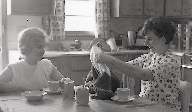 Norma, on the other side of our house, hanging newly clean wash on her clothesline, would call back that she would be over in a few minutes.