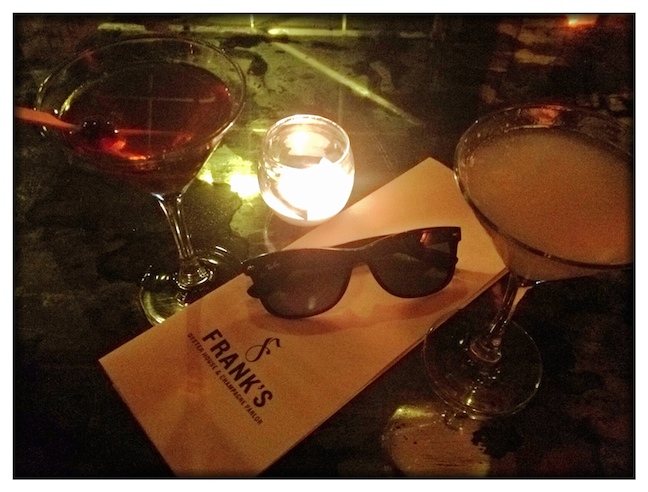 Calvados, Ray-Bans & KindnessSo, like I said, we went to Frank’s tonight. Upon arriving, the bartender greeted us warmly and then hustled into a backroom. He came back with this statement, “You didn’t by chance leave a pair of sunglasses here last time you were in, did you?” He had found them after we had left last time and, not wanting to put a pair of Ray-Bans in the Lost & Found, had tucked them away for when we returned. It was a spectacularly kind and thoughtful thing for him to do and Melinda was visibly touched.