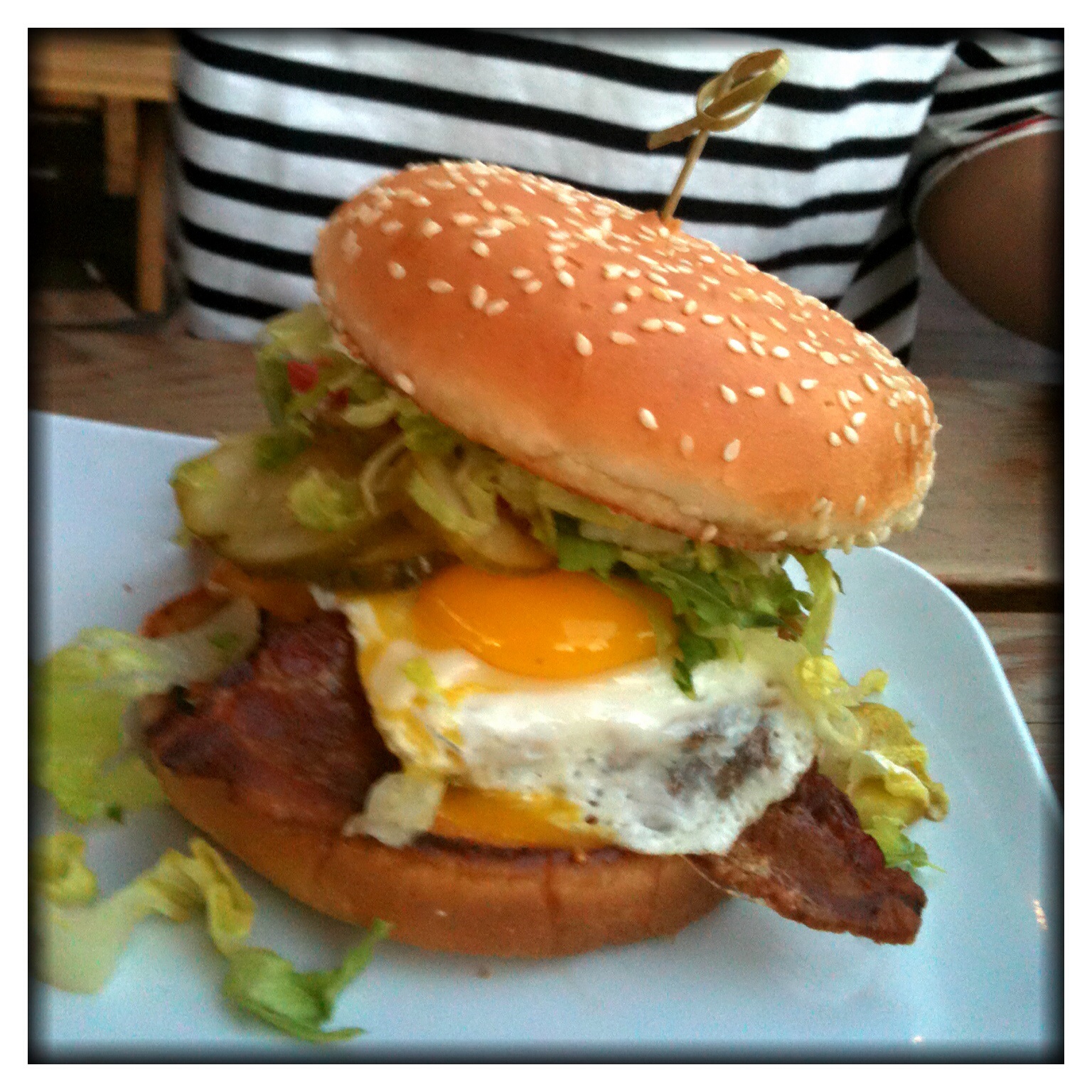 But he doctored that one up, adding bacon, cheddar, and a fried egg (see photos). He also managed to slosh down a salted caramel milkshake, in the process telling us the only other time in his life he’s had a milkshake is when he had his wisdom teeth removed.