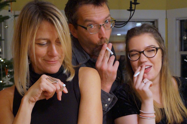 Now for the real story. And it’s really quite simple. For Christmas, I bought a box of candy cigarettes for Brenda (and Greg). That’s right, candy. C-A-N-D-Y. Melinda grabbed the camera and the acting began!