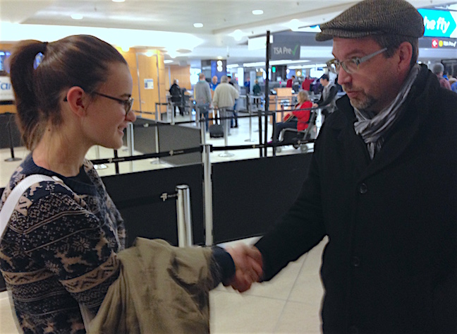 Business was concluded with our French guest at approximately 11 this morning, a transaction that culminated with this handshake at SeaTac International Airport. I believe all parties have been satisfied with the business that took place over the past 5 months. And I am pleased to report that Celeste knows how to give a firm, American handshake.