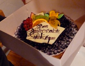 Now here is the nitty-gritty detail you have to understand. Regardless of whether or not it is her birthday, there is a standing rule in the Boudeau family that Frédérique does not make dinner on Sundays. Given that her birthday this year fell on a Sunday, I wasn’t sure if perhaps this would be one of those double negative things. You know, where somehow a normal situation is flipped and then the opposite thing happens. Which, of course, means that Frédérique would have to make dinner since her birthday this year fell on a Sunday. So I paid close attention to see if that might happen, or if we perhaps would cross into some parallel dimension in which Frédérique ONLY makes dinner on Sunday nights.