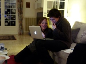 Okay, so I made most of that up. Well, at least the part implying that I’m a member of paparazzi (Chloe may disagree). The real story is that this window is part of our apartment, and the hard-working man inside is Melinda’s dad, Dwight. Among many interesting things about our apartment is that this window actually looks out into the carriage entrance, complete with cobblestones. We are staying in a renovated townhouse that has enough historical significance to be included in a book called “The Marais.” The book mentions that “a substantial Louis XV staircase at the end of a deep vestibule has survived.” The paparazzi intend to take some photos on that staircase, I’m sure.